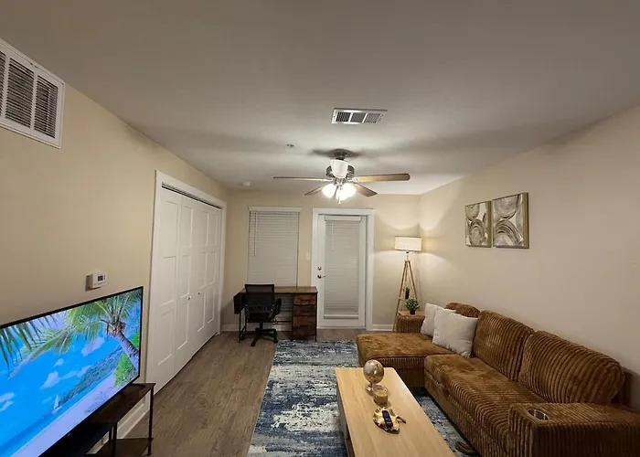 O Luxe Getaway By At&T & Six Flags Apartamento Grand Prairie está localizado a uma distância de aproximadamente 10 minutos a pé de Richard Greene Linear Park e 4 km de Estádio AT&T. Para diversificar o lazer dos hóspedes, piscina privada é fornecida.